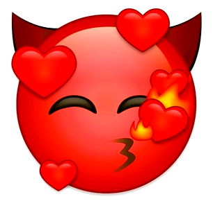 A creative digital art piece featuring the OnlyFans model Camila Lopez with a red devil face and devil horns, adorned with various emojis of hearts and flames, creating an image that seems to express love and passion.