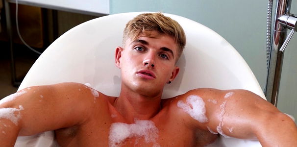 This is an attractive, high-resolution outdoor image of a young man in his late twenties, enjoying a day by the swimming pool. He is captured mid-swim, demonstrating his fit physique as he maneuvers through the crystal clear, blue water. The man is bare-chested, showcasing his muscular build which is further highlighted by the glistening water on his chest. His face, partially submerged in water, conveys an expression of concentration and determination, adding an element of intensity to the otherwise serene environment. His facial features are well-defined, contributing to his youthful and masculine appearance. The vibrant blue of the swimming pool contrasts beautifully with his tanned skin, enhancing the overall aesthetics of the image. This picture perfectly encapsulates a moment of leisure and physical activity, set in a relaxing outdoor environment. The image could possibly be used in lifestyle, fitness, or travel-related contexts, owing to its vibrant and dynamic nature.