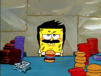Luka, a young man with a passion for SpongeBob SquarePants, stands in front of a table laden with hamburger patties and condiments. His eyes are wide with anticipation as he waits to make the perfect SpongeBob-themed burger.