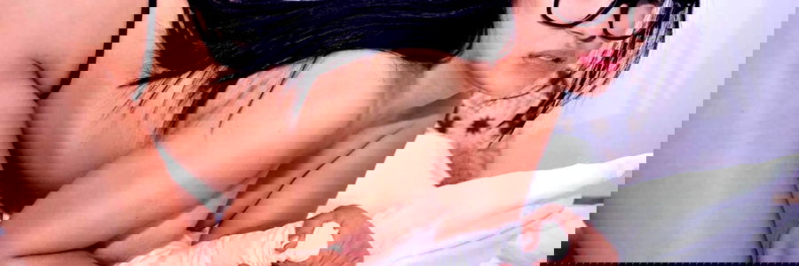 A photograph of a model from Costa Rica posing intimately on a bed with black and white filters. The model is wearing glasses and appears to be in the midst of an activity related to modeling. The image is taken indoors with soft lighting. It does not provide explicit details, maintaining a tasteful and mature presentation.