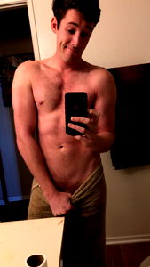 A young man from Orange County, CA, showcasing his physique for OnlyFans. He is shirtless and flexing in the mirror with a confident smile.