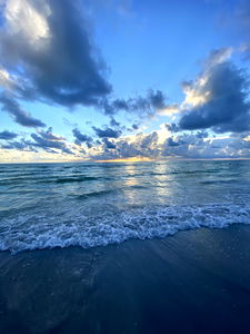 Beautifully captures the tranquility of a morning beach sunrise, with the ocean waves gently lapping at the shore. A serene and picturesque scene perfect for your Instagram feed.