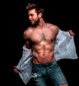 This image showcases a young man, likely in his late twenties, displaying his well-toned physique. He stands bare-chested, his prominent muscles and chiseled abdomen in full view. The man's face, with its distinct features, exudes a sense of determination and confidence. He wears a pair of jeans that accentuates his athletic build. The jeans appear to be the only piece of clothing on him, emphasizing his focus on fitness and bodybuilding. The viewer's attention is immediately drawn to the man's chest and stomach area, where his muscles are most evident. His broad shoulders and well-defined biceps are also noteworthy, indicating a regular upper body workout regimen. His neck and elbows further portray his physical strength, suggesting a body accustomed to strenuous exercises. Despite his robust appearance, the man maintains an approachable demeanor, his face hinting at a warm personality under the tough exterior. The image seems to celebrate the commitment to physical fitness and the dedication required to maintain such an impressive physique. It's a testament to the man's discipline and perseverance in his pursuit of physical excellence.