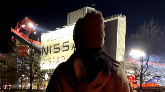Nashville model Chili Bang showcases her chic and stylish look, perfect for a sunny day in the city. Her sunglasses, necklace, and black tank top are complemented by the trendy black and white sneakers. She accessorizes with a casual bun and light makeup to create an effortless yet fashionable ensemble.