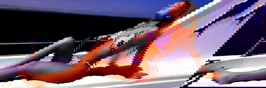 In the image, Chloe Tami, a renowned OnlyFans model from Glasgow, Scotland, is captured in a moment of leisure on a luxurious yacht. She's lounging on the deck, basking in the sunlight, and showcasing her unique swimwear collection that includes her signature pink bikini. The image exudes an air of luxury and relaxation, as Chloe enjoys her time on the water.