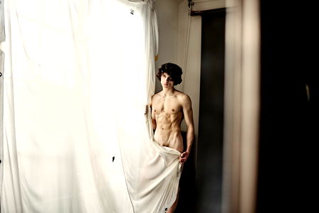 This is an image of a muscular man, likely a bodybuilder, standing near a wall. His well-defined physique is on full display, accentuating his broad chest, chiseled abdomen, and powerful shoulders. His skin tone gives off a warm, fleshy hue, adding a touch of realism to the image. He is shirtless, highlighting his sculpted upper body, which is a testament to his dedication to fitness and bodybuilding. The veins on his arm suggest that he's in the middle of a workout or has just finished one. He's also wearing brief undergarments or underpants, which are the only piece of clothing on his body. This further draws attention to his muscular legs and hips, giving a complete picture of his bodybuilder physique. The man is standing in an indoor setting, with a wall visible behind him, providing a neutral backdrop that doesn't distract from the main focus of the image. Despite his impressive build, there's a sense of relaxed confidence about him, suggesting comfort with his body and his strength.
