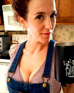 A candid shot of Bea, an OnlyFans model, with her morning coffee, looking relaxed and inviting.