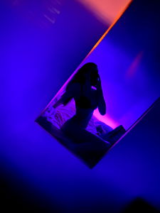 This is a portrait of a young woman, approximately 22 years old, with a striking presence. She has a beautifully oval-shaped face framed by long, layered brown hair that cascades down her shoulders. Her hair is styled in a way that accentuates her facial features, with some blonde highlights adding a touch of glamour. Her dewy skin is almost glowing, a testament to a well-maintained beauty regimen. She has chosen to enhance her natural beauty with subtle makeup, including a glossy lipstick that adds a touch of color to her lips, and a thin line of eyeliner that makes her eyes look more defined. Her long, lush eyelashes further amplify the allure of her eyes. She is posing indoors against a plain wall, which helps draw attention to her and her outfit. She's wearing a fashionable lingerie top, which suggests that she might be a fashion model. The overall look is suggestive of a professional photo shoot, indicative of her career in the modeling industry. Her elegant pose and confident demeanor make her look like a seasoned professional, used to being in front of the camera.