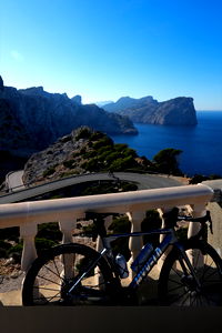 Stylish female athlete poses in white sports gear with bicycle and scenic background, highlighting active lifestyle and outdoor adventures. She's a perfect representation of fitness and biking culture.