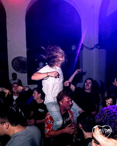 In this image, DarbiQ, a model from Melbourne, Australia, is captured in an unconventional pose. Dressed in a white t-shirt and dark pants, he holds a balloon close to his face, adding an element of fun to the scene. His tattooed arm and piercing gaze create a memorable image.