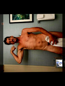 Wild Wonderful West Virginia: Dat T Bones, a professional bodybuilder, flexes his muscles in a bathroom mirror. His powerful physique is showcased as he strikes a pose for the camera. A towel casually draped over his shoulder adds an element of ruggedness to his look.