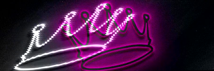An image of a pink neon crown on display. This is an OnlyFans-style sign for the model 'DopeBoiBvnny'. It is a unique promotional item with a vibrant color scheme.