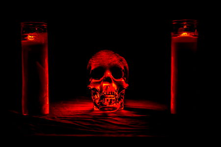 A tattoo artist capturing a moment of pride with his work displayed behind him. The man is holding up a camera, taking a selfie with the tatted shop and other items in the background, including another person's head.