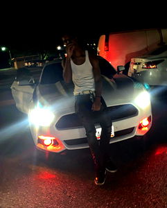 A hip-hop influenced model photo featuring a DMV-based individual, showcasing a laid-back vibe with a car interior in the background. The subject is seen holding a bag of weed and smoking a blunt while posing for the camera. The overall aesthetic conveys a sense of modern urban lifestyle.
