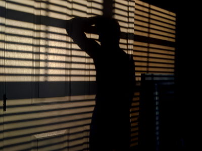 An intimate look at the elusive artist, Thomas. Caught in a moment of solitude, his figure is rendered as an intriguing shadow play on a white wall. His face and form obscured by the slats of a blind, we are left to imagine the stories behind each stroke. The image speaks volumes without uttering a single word.