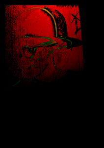 This is an image of a man with a beard. He appears to have just finished doing some sort of activity that resulted in paint splattered on his hair and a black eye. The man is looking at the camera, and it seems like he might be making a statement or simply posing for the photo. There are no visible texts within the image.