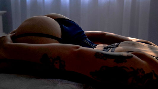 A Western Australian lingerie model, known for her provocative and alluring style, photographed in a seductive pose on a bed with lace garments. She is showcasing her confidence and sensuality.