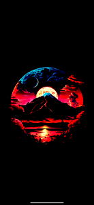 A digital wallpaper featuring a vibrant landscape with a mountain sunset. The artwork has an atmospheric vibe and could be perfect for someone looking to enhance their phone's aesthetic appeal.