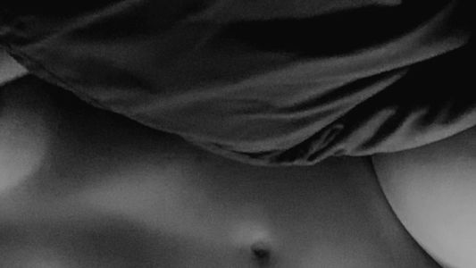 This image features Nadiia, a beautiful woman with a tattoo on her upper arm. She is captured from an overhead angle, lying down and holding her breast. Her pose suggests a sense of intimacy and comfort with her body. With her skin exposed to the light, one can appreciate the details of her physique.
