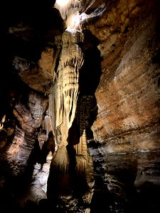 Awe-inspiring image of a cave with a waterfall, stalactites, and other natural formations. The Easton model is featured prominently in this stunning view.