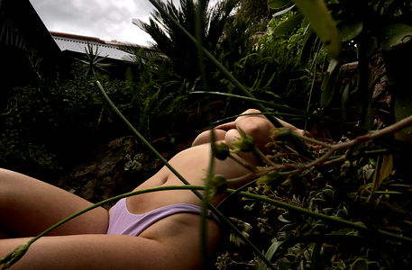Ebony, the OnlyFans model, is seen lounging on a sunbed in her bikini. She's shielding her eyes from the sun with one hand, perhaps enjoying a moment of tranquility amidst the busy world around her. The serene setting suggests she might be on vacation or spending some leisure time outdoors. Her pose and attire hint at a carefree and spontaneous spirit.