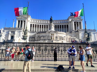 In this image, Edo125 is standing in front of the iconic Trevi Fountain. He's dressed casually and appears to be enjoying his time in Rome. The fountain, a famous landmark, adds a sense of grandeur to the scene.