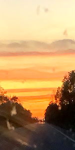 A captivating image of a sunset at dusk. The sky is painted in hues of orange, casting an atmospheric glow over the roads and trees below. EmberLynn's model photo captures this serene moment, where the horizon meets the clear blue sky.