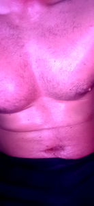 An OnlyFans model posing suggestively, lying on a floor indoors. The model is shirtless and appears to be in his underwear.