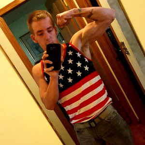 A young, muscular male model confidently posing for the camera in his patriotic swimwear. Onlyfans exclusive content.