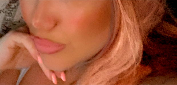 An image featuring an adult female with long hair, captured in a close-up shot with a soft-focus background. Her facial expression is neutral, and she is wearing what appears to be a pinkish lipstick. She has fair skin and is indoors.