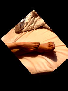 A close-up photograph capturing the intricate details of a human foot with visible toenails, resting atop another, against the backdrop of a hospital bed. The image evokes themes of vulnerability and human touch.