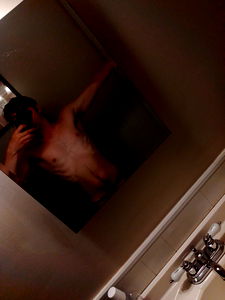 In a mirror selfie, OnlyFans model FitAndAnon showcases their progress in fitness by flexing their well-defined muscles. The image captures the model's dedication to their workout routine.