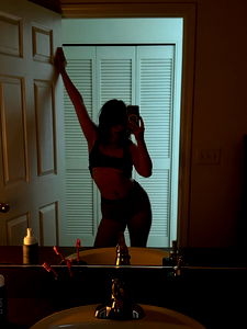 This image captures a candid moment of the acclaimed OnlyFans model Sasha June, posing in her signature lingerie. Her radiant smile and playful pose suggest a sense of comfort and confidence that reflects her popularity on the platform. Her attire, combined with the setting, paints an intimate portrait of this Oregon-based model. ย