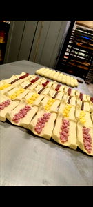 In the heart of Uruguay, a skilled baker demonstrates the art of pastry making. The image showcases an array of vibrant, handcrafted pastries, each exhibiting intricate designs and textures. From classic croissants to more elaborate creations, the baker's skill is evident in these sweet culinary delights. The bakery's warm ambiance, characterized by the inviting glow of the oven in the background, adds a homey touch to this delightful display of pastry craftsmanship.