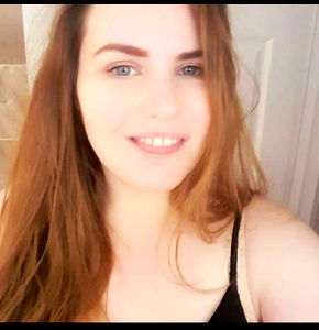 A young adult female from London, England is seen taking a selfie with her phone. She has long hair and is wearing a black top. Her smile radiates warmth and joy.