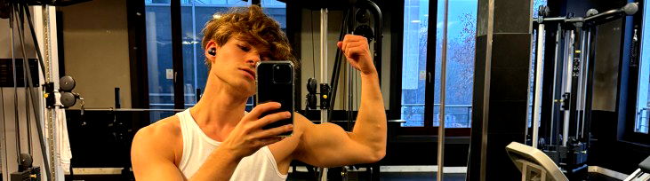 This image captures a scene set indoors, likely in a kitchen area. The primary subject is a person, specifically a man, who is the central element in the composition. He is characterized by a well-defined musculature, evident in the visibility of his chest, stomach, and shoulders. The man's face also stands out, bearing expressions that could potentially narrate a story. The man appears to be shirtless, or barechested, which further accentuates his muscular form. This suggests that he might be involved in some form of physical activity or is possibly just resting post-exercise. He is also wearing some form of clothing, although the specifics are not entirely clear from this description. His surroundings, presumably a kitchen, are also visible but the focus remains on him. The walls in the background provide a neutral space that aids in highlighting the man's physique. Overall, the image presents a candid yet intriguing view of a man, possibly during a private, routine moment in his life.