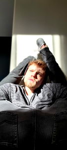A young man with a beard, expressing himself with his tongue out. He is wearing casual attire and seems to be in a relaxed mood.