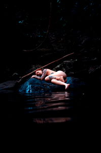 A sultry OnlyFans model submerged in a vibrant blue waterfall, capturing an intimate moment of relaxation and enjoyment.