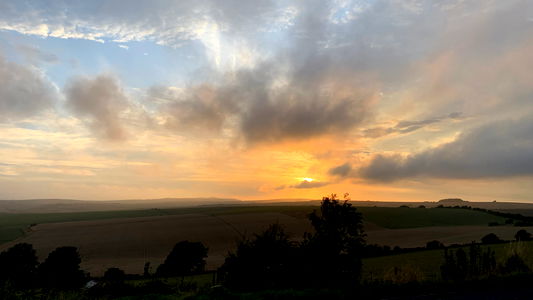 A beautiful sunset over a rural landscape, featuring a model designed as Ginger Rugby. The model stands out against the sky, adding an interesting element to this tranquil scene.