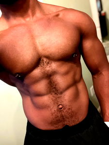 A bodybuilding Onlyfans model from Texas showcasing his athletic build in a gym setting. A strong and fit figure.