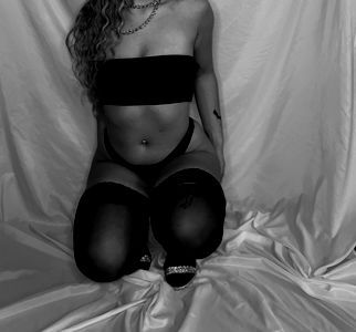 A captivating image featuring a woman in black lingerie and fishnet stockings, sitting against a white backdrop. Her pose exudes confidence and allure. The simplicity of the background allows the viewer to focus solely on her. The image is a testament to the power of intimate photography.