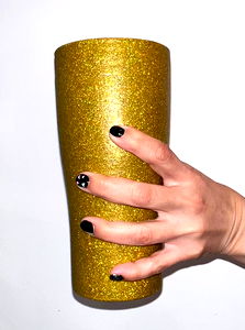 A trendy gold foil cup. Perfect for sipping your favorite beverages while enjoying a luxurious touch. Shiny, shimmery, glamourous!