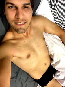 Haritz, a popular model on OnlyFans, shares a selfie in a mirror. The image captures his relaxed demeanor and confident pose. He's shirtless, flaunting his tattooed biceps. The room is dimly lit with warm tones that highlight the intimate nature of the photo. This selfie encapsulates the allure and candidness often associated with OnlyFans content.
