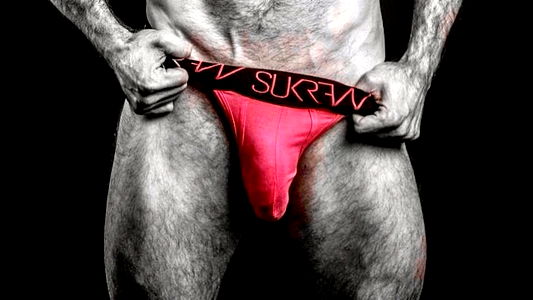 The image captures a well-built man in an indoor setting. The man is shirtless, revealing his muscular physique. His well-defined chest and stomach muscles are prominently on display, suggesting that he spends a significant amount of time working out. His undergarments, likely briefs or swim briefs, are the only piece of clothing he appears to be wearing. The man's elbow and joint are also visible, and he seems to be in a standing position. His skin, or what the viewer might refer to as 'flesh', appears to be well-toned and healthy. The man's navel is visible, located at the center of his abdomen, adding to the overall impression of fitness and health. The man's hip bone is also slightly visible, further emphasizing his lean physique. The background appears to be a wall, indicating that the photo was taken indoors. Despite the simplicity of the setting, it does nothing to detract from the central figure in the image. The focus remains solely on the man and his impressive physical form.