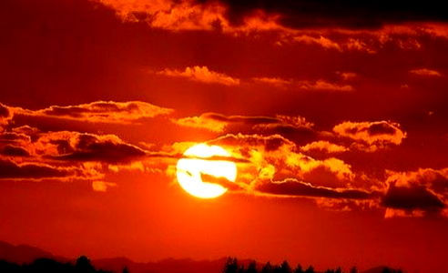 A captivating image of a sunset, silhouetted against the sky, highlighting its warm colors and fluffy clouds. The photo evokes a sense of serenity and the end of a day. It is reminiscent of a romantic getaway or a peaceful evening at home.