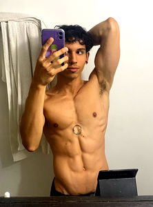 The image captures a moment in the life of Pablo, a young and athletic fitness model. In this particular photo, he is seen in a gym setting, showcasing his toned physique. He is holding up a mirror with his phone, perhaps to capture his own progress or share a workout routine with his fans. His fit body and focused demeanor suggest dedication and commitment to his health and fitness goals. Pablo's unique style and charisma make him stand out among other fitness models.