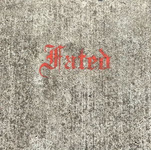The image features a sidewalk with the word 'Fated' written in cursive, reminiscent of a tag. The text is prominently displayed against the backdrop of the cityscape.