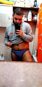 A male model taking a mirror selfie in his bedroom, showcasing his casual style and tattoos. Ric is known for his vibrant personality and fitness-focused lifestyle.