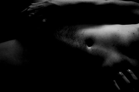 OnlyFans model Hunkboyvr showcases his physique in a black and white photo, capturing the contrast and the art of the human form. He is seen from behind, highlighting his muscular back and the graceful pose he strikes.