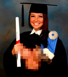 The image captures a heartwarming moment of a woman's life as she celebrates her graduation. She appears to be in her mid-thirties, with a radiant smile that perfectly encapsulates the joy and pride of this significant milestone. Her face, the main focal point of the image, is beautifully framed by her academic dress, which is a traditional ensemble typically worn by graduates. She is dressed in an academic costume, signifying her participation in a commencement ceremony. The attire features a mortarboard resting atop her head, a clear symbol of her scholarly achievements. The attire's design suggests that it's associated with a college or university, indicating that she's a higher education graduate. Her hands are gently holding a diploma, an embodiment of her hard work and dedication throughout her academic journey. The graduation, the academic dress, and the diploma collectively paint a picture of an accomplished scholar who is ready to embark on her next journey. Her attire, her smile, and the diploma she's holding all contribute to the overall theme of graduation and academic success in this image.